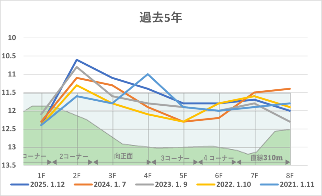スタートから常に11秒台のラップを刻むようなスピード能力を求められる。3コーナーの5F地点が唯一息を入れられるチャンスだが、そこで息が入らないと先行馬は苦しくなる。このレースでは上がり5位以上が必須条件で、追走力があり持続力ラップ・消耗戦ラップで速い末脚を使える馬が好走しやすい。
